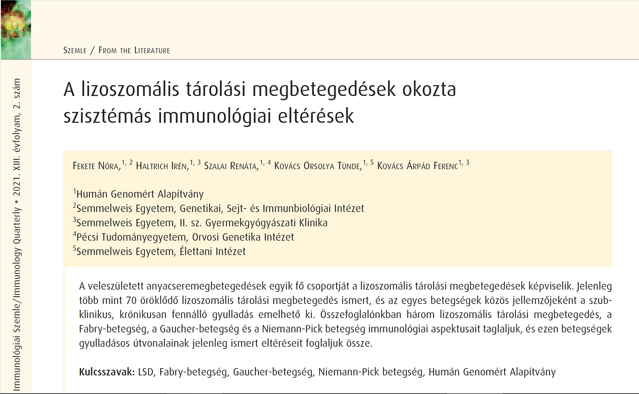 A Fabry-betegség a leggyakoribb lizoszómális tárolási megbetegedés. A galaktozidáz α gén (GLA) betegségokozó variációinak következtében létrejövő α-galaktozidáz A enzim instabilitása, csökkent biológiai aktivitása vagy hiánya miatt alakul ki.A kóros enzimműködés/enzimhiány okozta glikoszfingolipid felhalmozódás szerteágazó, gyakran már gyermekkorban jelentkező klinikai tünetegyütteshez, valamint döntően a harmadik évtized után kialakuló, életet veszélyeztető szövődmények kialakulásához vezethet. A klinikai fenotípus alapján a Fabry-betegség a klasszikus formára és a gyakoribb incidenciát mutató atípusos formára osztható.